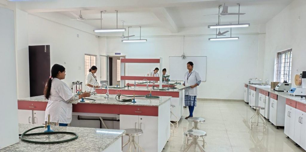 Equipped for analytical, physical, and organic chemistry practicals. Features include spectrophotometers, pH meters, glassware of various specifications, and reagents for quality experimentation. - Pharmaceutics & Formulation Lab